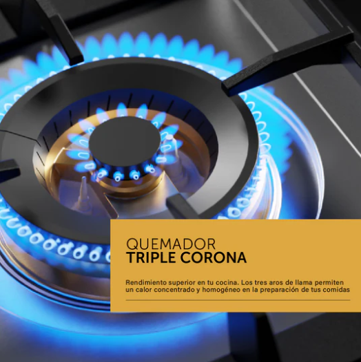 Incorpora un sistema de encendido electrónico ágil y seguro, eliminando la necesidad de fósforos o encendedores, y brindándote mayor comodidad y rapidez al cocinar. Equipado con quemadores especialmente diseñados para distintos tipos de preparaciones, este anafe incluye un quemador auxiliar ideal para cocciones suaves, quemadores semi-rápidos para uso diario, un quemador rápido para tareas más exigentes, y un potente quemador triple corona, que distribuye el calor de forma uniforme para recetas que requieren alta intensidad.