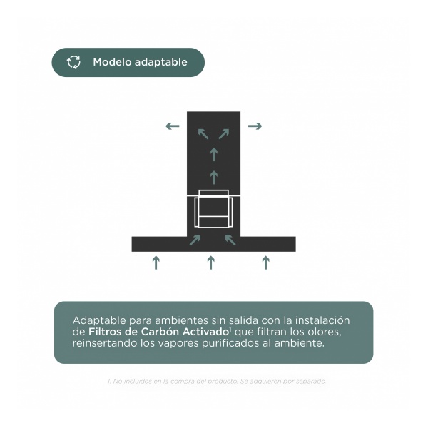 Filtro de carbón activado: Para instalación sin salida al exterior.