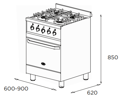 Hornallas de alta eficiencia // Quemador triple corona (en modelo 900 mm).