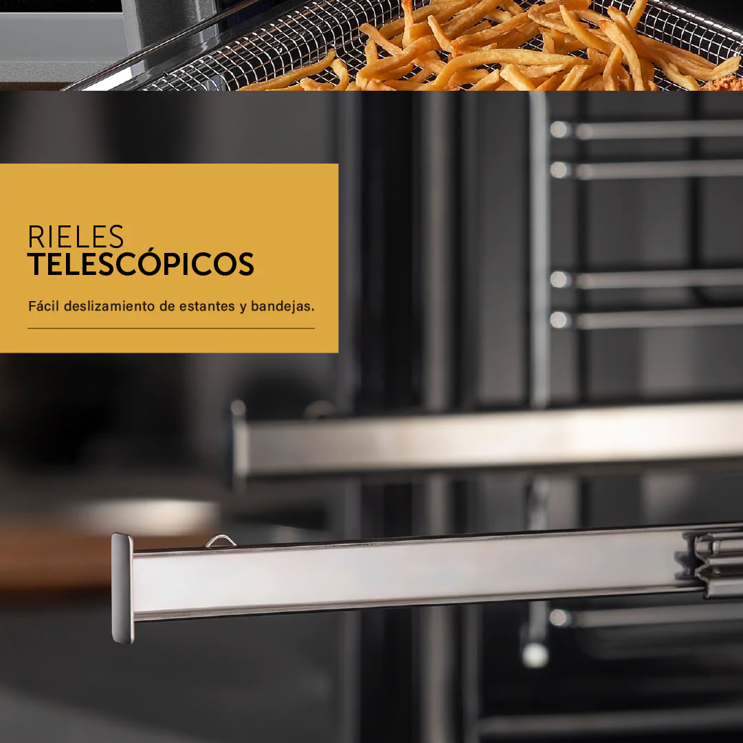 Además, el Cierre Suave y los Rieles Telescópicos hacen que cocinar sea un placer. Este horno es la combinación perfecta de tecnología y diseño para crear momentos inolvidables.
